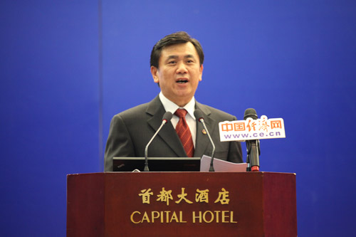 由中國道路交通安全協(xié)會、中國汽車技術(shù)研究中心和中國經(jīng)濟(jì)網(wǎng)共同主辦的“2013中國道路交通安全論壇”于8月29日在北京首都大酒店舉行。圖為交通運輸部副部長馮正霖致辭。中國經(jīng)濟(jì)網(wǎng) 裴小閣 攝影