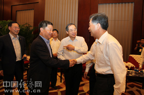 6月17日,以“社會共治、同心攜手維護食品安全”為主題的2013年全國食品安全宣傳周主場活動在北京舉行。國務院副總理汪洋出席活動并講話。圖為國務院副總理汪洋和中糧集團董事長寧高寧交流。 中國經濟網 王耀峰/攝